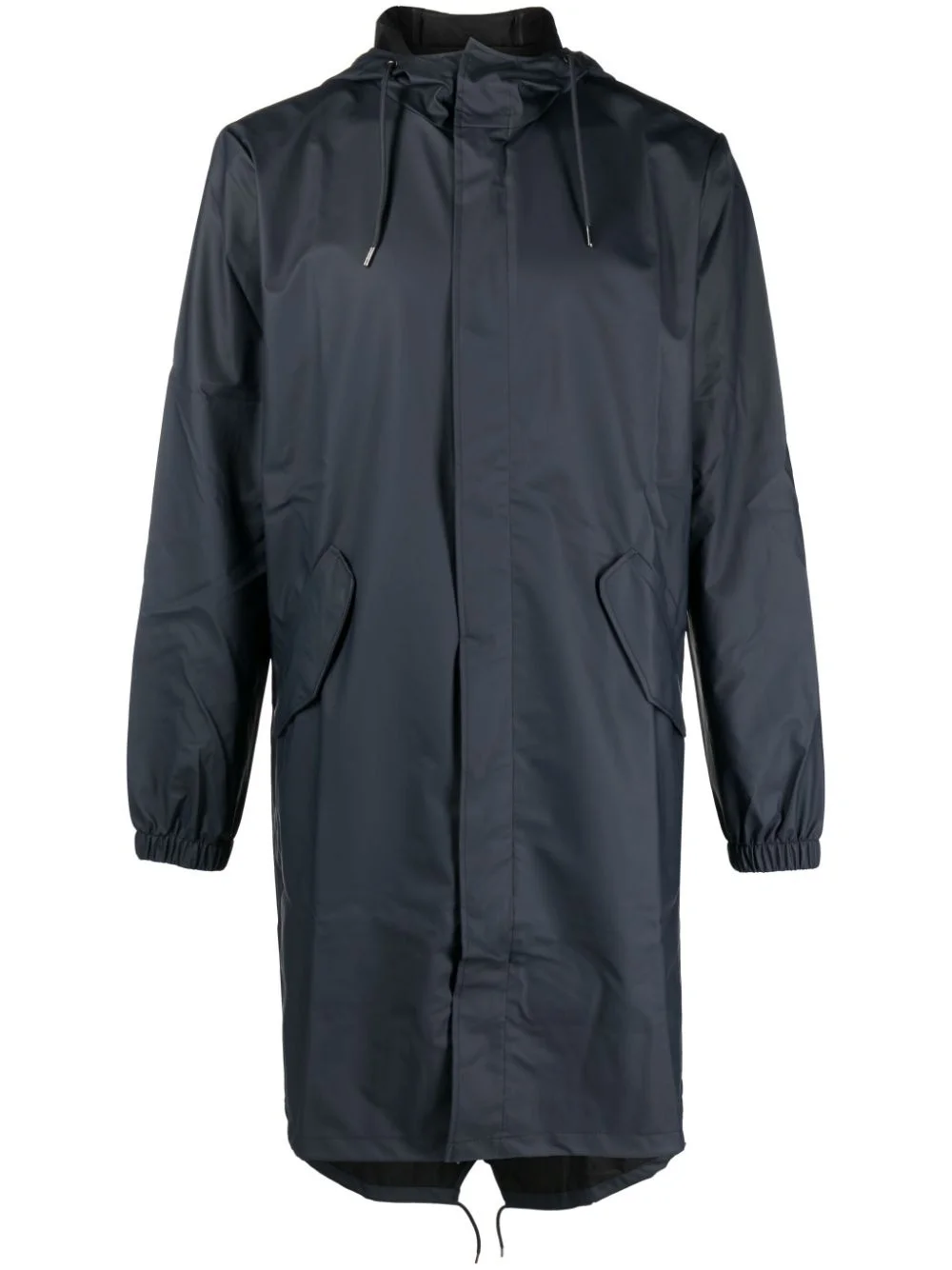 zip-up hooded raincoat Highlights - Navy blue - Waterproof - Drawstring hood - Front press-stud fastening - Two front flap pockets - Long sleeves - Elasticated cuffs - Fishtail design - Drawstring hem - When buying this unisex item, keep in mind that it is graded in standard men's sizing. Imported Composition Polyester 100% SIZE & FIT Model measurements Height 6 ft 2 in(1.88 m) Bust/Chest 37.79 in(96 cm) Hips 35.82 in(91 cm) Waist 29.92 in(76 cm) FittingInformation This unisex piece is designed for a loose fit whether you usually select women's or men's sizes The internal drawstring at the hem allows for fitted preferences Made from a midweight non-stretch fabric Washing instructions Machine Wash