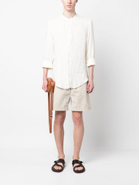 band-collar linen shirt Highlights - Bone white - Linen - Band collar - Front button fastening - Long sleeves - Buttoned cuffs - Curved hem Made in Italy Composition Linen/Flax 100% SIZE & FIT Model measurements Height 6 ft 2 in(1.87 m) Bust/Chest 35.82 in(91 cm) Hips 35.43 in(90 cm) Waist 27.95 in(71 cm) FittingInformation Designed for a relaxed fit, this piece allows for comfort and movement when worn Made from a lightweight non-stretch fabric This piece fits true to size – take your usual size Washing instructions Hand Wash