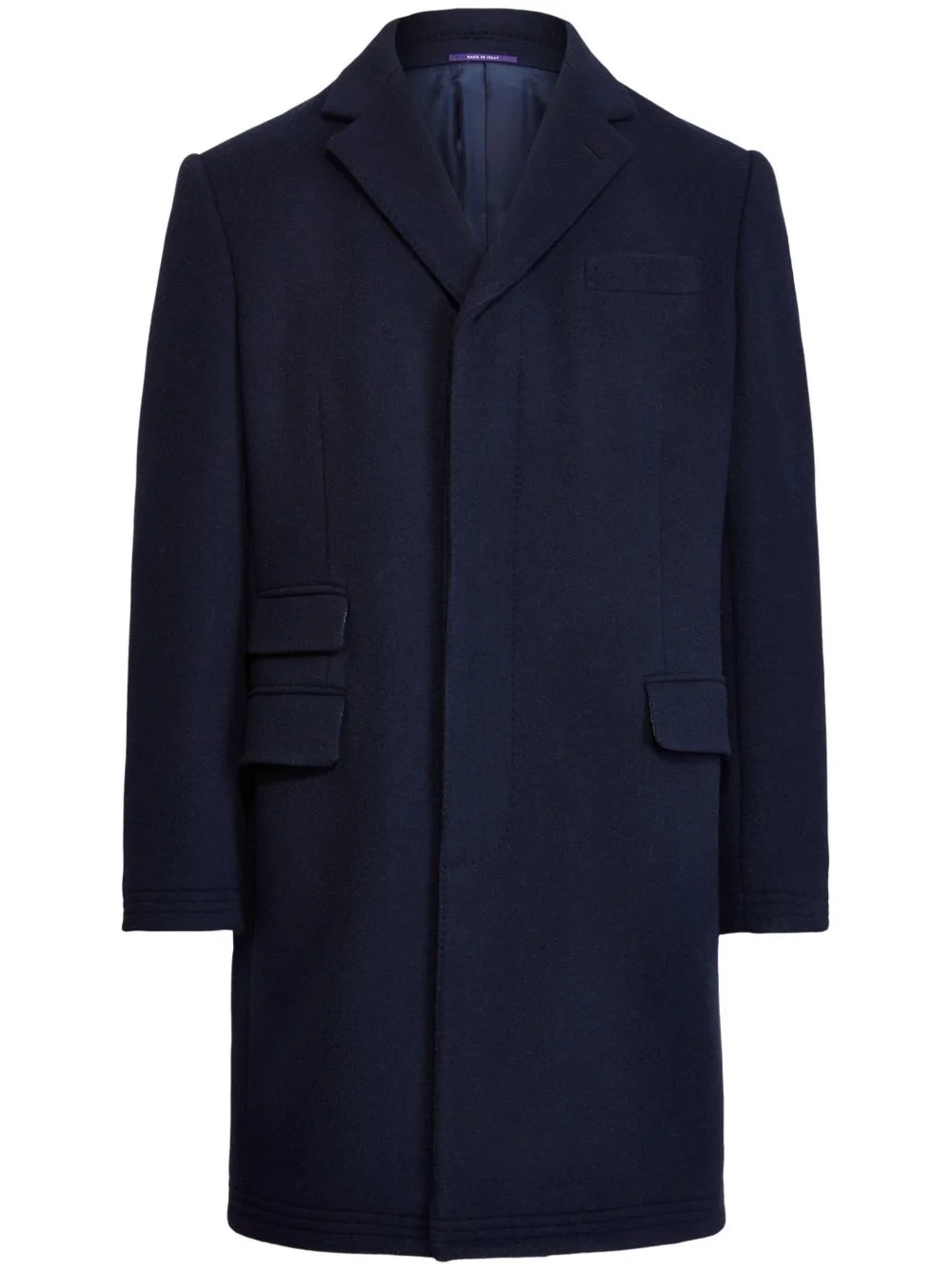 brushed wool coat Highlights - Navy blue - Concealed front fastening - Chest welt pocket - Three side flap pockets - Long sleeves Made in Italy Composition Wool 100%