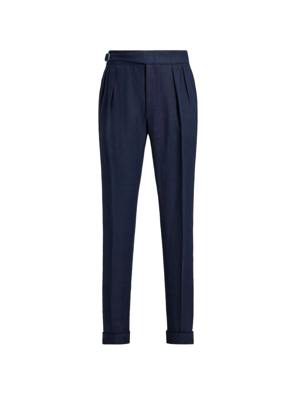 Byron pleated trousers Highlights - Navy blue - Pleated front - Rolled hem - Belt loop - Buttoned back pocket Made in Italy Composition Linen/Flax 100% Washing instructions Read Manufacturer Guidelines