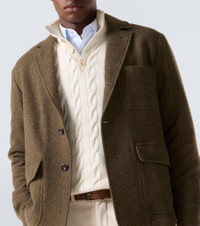 Crafted from luxurious materials, Ralph Lauren Purple Label’s elegant designs boast classic silhouettes and traditional tailoring. Crafted from cashmere and wool twill, this coat features single-breasted closure, flap pockets, and a chest patch pocket. Product Details - Material: 64% cashmere, 36% wool - Care instructions: dry clean - Made in Italy - Designer color name: Inverness Loden - Item color: green - Lining: 51% cotton, 49% viscose - Sleeve lining: 51% cotton, 49% viscose - Details: 100% lamb leather (suede) - Contains non-textile parts of animal origin - Notched lapel - Pockets: rounded chest pocket, flap pockets - Cuff: buttoned - Closure: single-breasted (two buttons) - Item number: P01070225 Size & Fit - True to size - Straight fit - Non-stretchy fabric - Falls below the hip - Height of model is 189cm-74.5" and wears a size UK 40