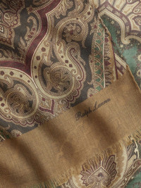cashmere scarf Highlights - Barley brown - Paisley print - Logo print to the front - Frayed edge Made in Italy Composition Cashmere 100%