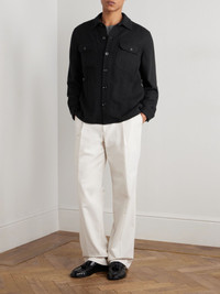 Ralph Lauren Purple Label showcases fine fabrics and exquisite craftsmanship. Knitted in a textured basketweave pattern, this shirt jacket has been made in Italy from soft cashmere and features a partial satin butterfly lining for smooth layering. Size & Fit - Fits true to size. Take your normal size - Designed for a regular fit - Mid-weight, non-stretchy fabric - Model is shown wearing a M - Model measures: chest 38"/ 96cm, height 6'1"/ 185cm Details & Care - Black cashmere - Button fastenings - 100% cashmere - Partially lined - Dry clean