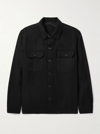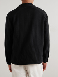 Basketweave-Knit Cashmere Shirt Jacket Black
