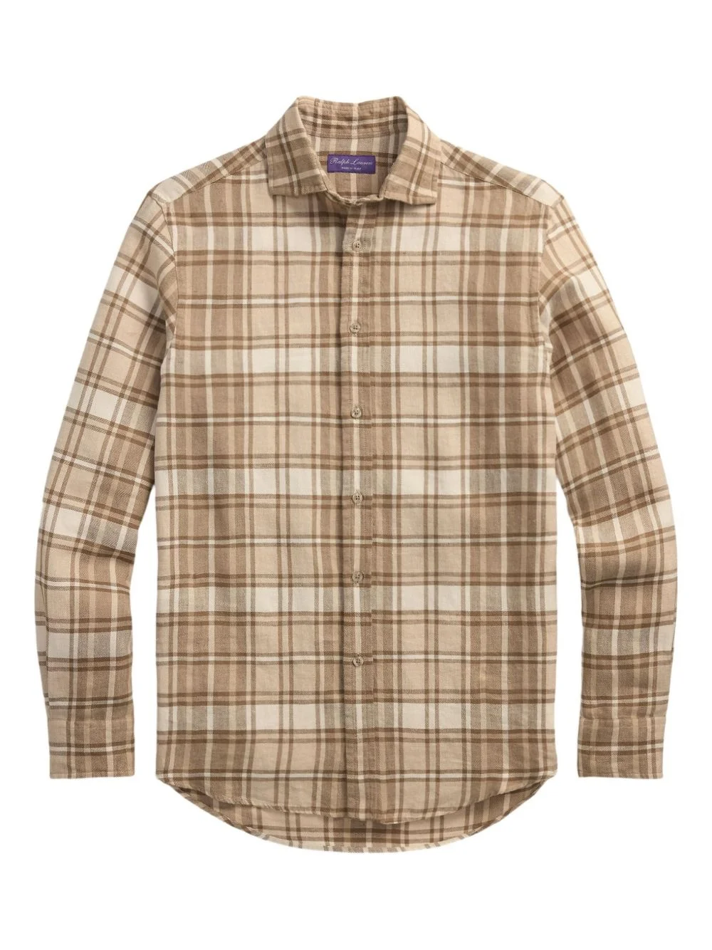 check-print shirt Highlights - Beige - Check pattern - Front button closure - Classic collar - Long sleeves Made in Italy Composition Linen/Flax 75%, Cotton 25%