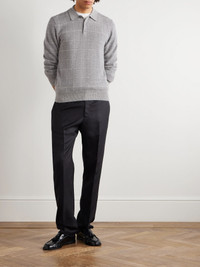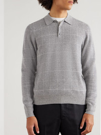 Checked Cashmere Polo Shirt Gray
