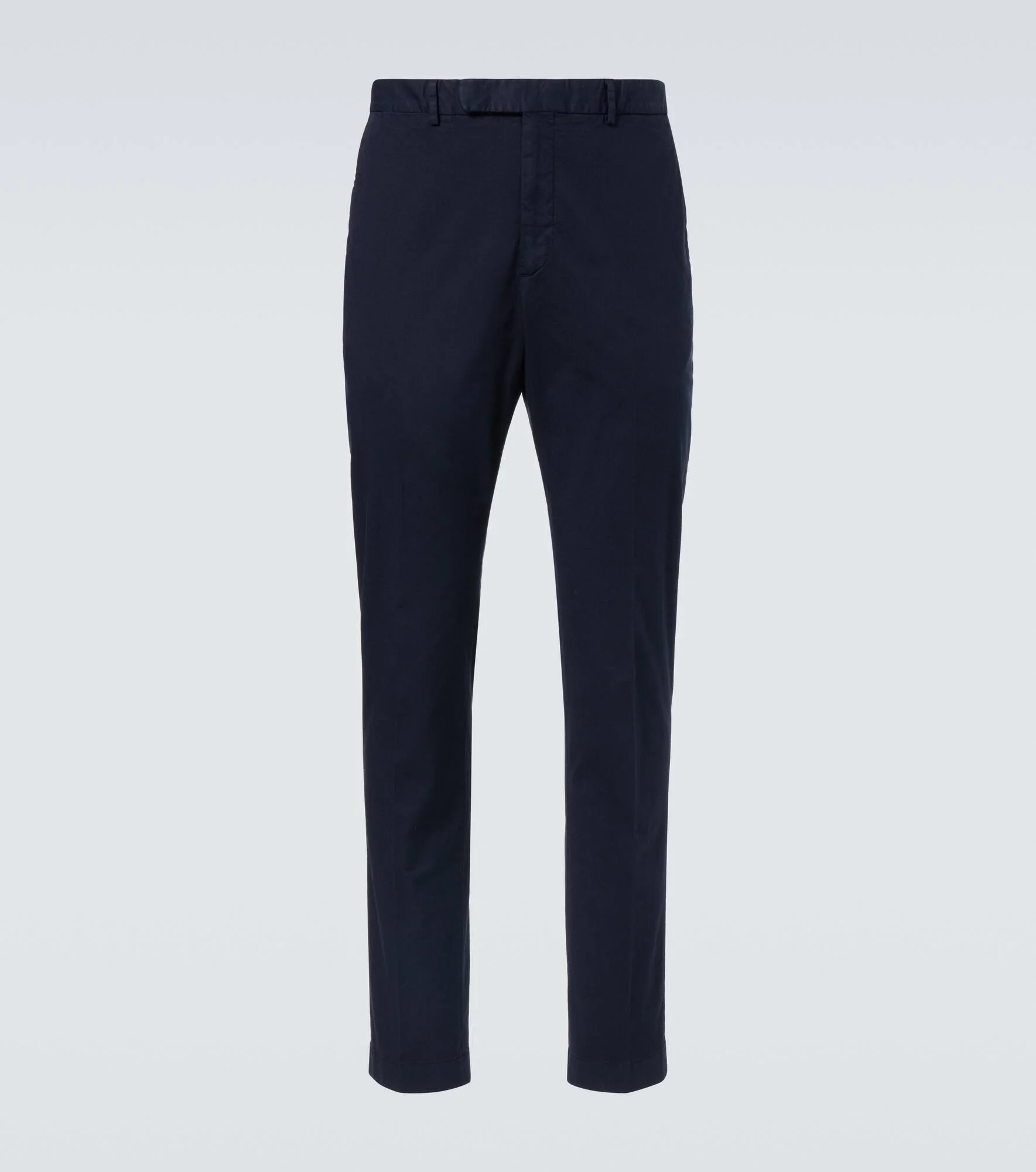 Each collection from Ralph Lauren Purple Label promises the vision of the American dream. Perfect for warm-weather outings, these chinos are made in Portugal from cotton-blend material. Product Details - Material: 96% cotton, 4% elastane - Care instructions: dry clean - Made in Portugal - Designer color name: Classic Chairman Navy - Item color: blue - Contains non-textile parts of animal origin - Closure: zipper fly, button and hook fastenings - Pockets: slant pockets, welt pockets - Belt loops - Item number: P01053759 Size & Fit - True to size - Non-stretchy fabric - Slim-leg - The model in the picture is 185cm-6'1" and wearing a size 32/32