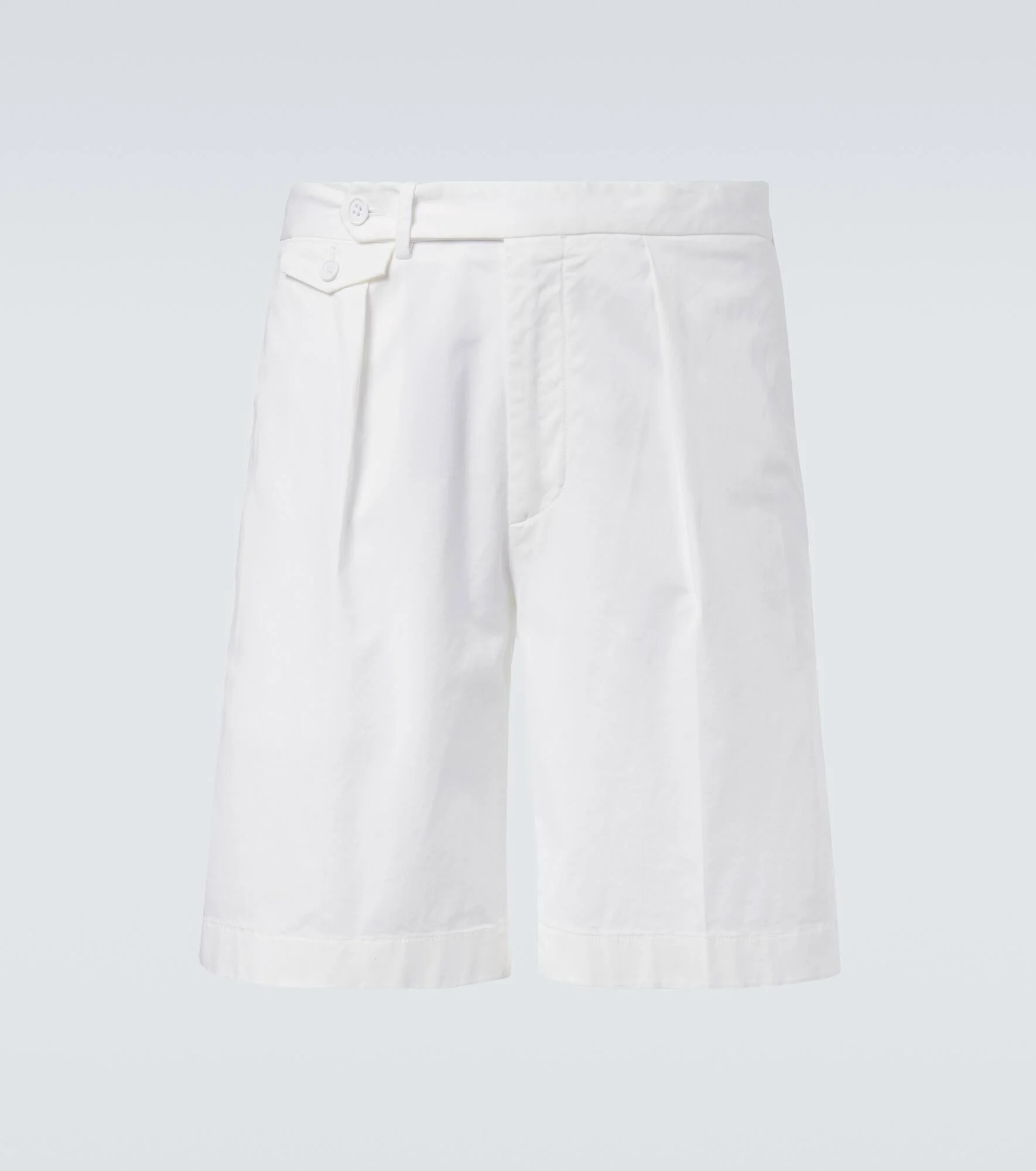 Crafted from luxurious materials, Ralph Lauren Purple Label’s elegant designs boast classic silhouettes. These cotton-blend shorts were made in Italy and have a flat-front design. Product Details - Material: 97% cotton, 3% elastane - Care instructions: dry clean - Made in Italy - Designer color name: Deckwash White - Item color: white - Pocket lining: 100% cotton - Closure: zip, hook, and button fastening - Item number: P01053765 Size & Fit - True to size - Adjustable at the waist - Non-stretchy fabric - Straight leg - The model in the picture is 185cm-6'1" and wearing a size 32