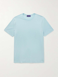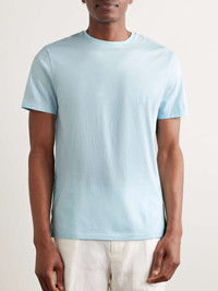 Ralph Lauren Purple Label's T-shirt is made from lisle, a kind of finely spun, mercerised cotton that's soft, smooth and durable. It's embroidered with a scripted moniker near the hem and reinforced with grosgrain along the side slits. Size & Fit - Fits true to size. Take your normal size - Those with broad shoulders may wish to take the next size up - Designed for a regular fit - Lightweight, stretchy fabric - Model is shown wearing a M - Model measures: chest 38"/ 96cm, height 6'1"/ 185cm Details & Care - Sky-blue cotton-lisle - 100% cotton - Machine wash - Designer colour: Corydalis Blue