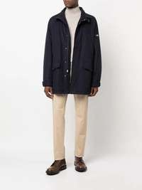 cotton wool blend parka navy blue cotton-wool blend high neck logo patch at the shoulder long sleeves two button-fastening pockets two chest flap pockets touch-strap cuffs concealed front zip fastening button fastening at the shoulder straight hem Imported Composition Outer: Lamb Skin 100%, Wool 75%, Polyamide 25% Lining: Cotton 100%, Polyester 100% SIZE & FIT Model measurements Height 6 ft 2 in(1.88 m) Bust/Chest 36.61 in(93 cm) Hips 35.82 in(91 cm) Waist 27.95 in(71 cm) FittingInformation This piece fits true to size. We recommend you get your regular size Cut for a loose fit Made with a mid-weight non-stretch fabric Washing instructions Dry Clean Only