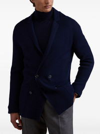 double-breasted cardigan Highlights - Navy blue - Front button fastening - Notched lapels - Two front patch pockets Imported Composition Viscose 54%, Wool 24%, Nylon 22%