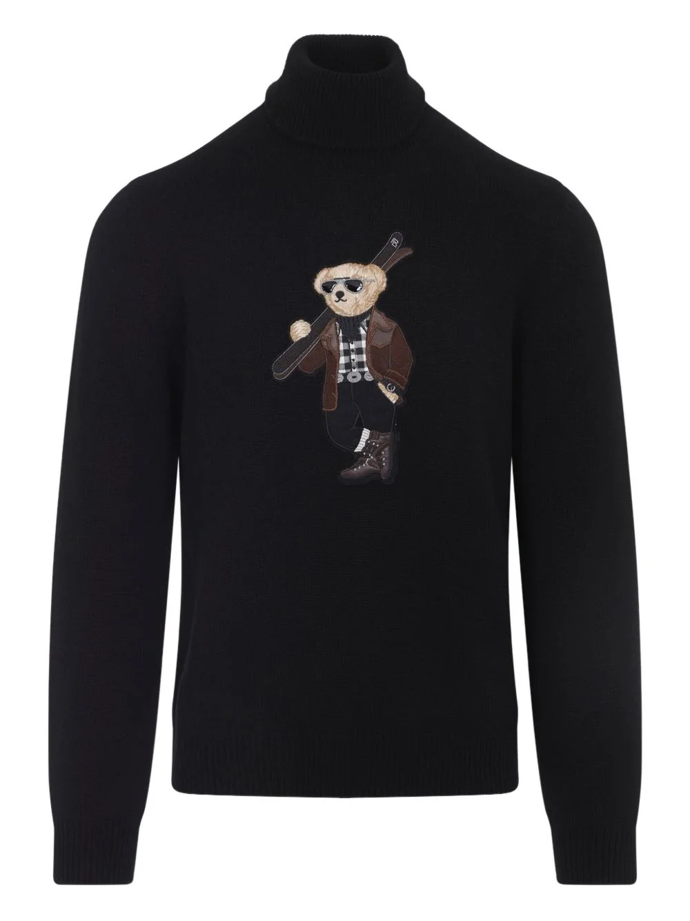 high neck sweater Highlights - Black - High neck - Embroidered motif Made in Italy Composition Polyester 55%, Cotton 35%, Elastane 10% Washing instructions Read Manufacturer Guidelines