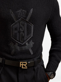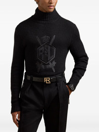 embroidered turtleneck pullover Highlights - Black - Turtleneck neck - Embroidered emblem - Long sleeves - Ribbed cuffs - Ribbed hem Imported Composition Polyester 55%, Cotton 35%, Elastane 10% Washing instructions Read Manufacturer Guidelines