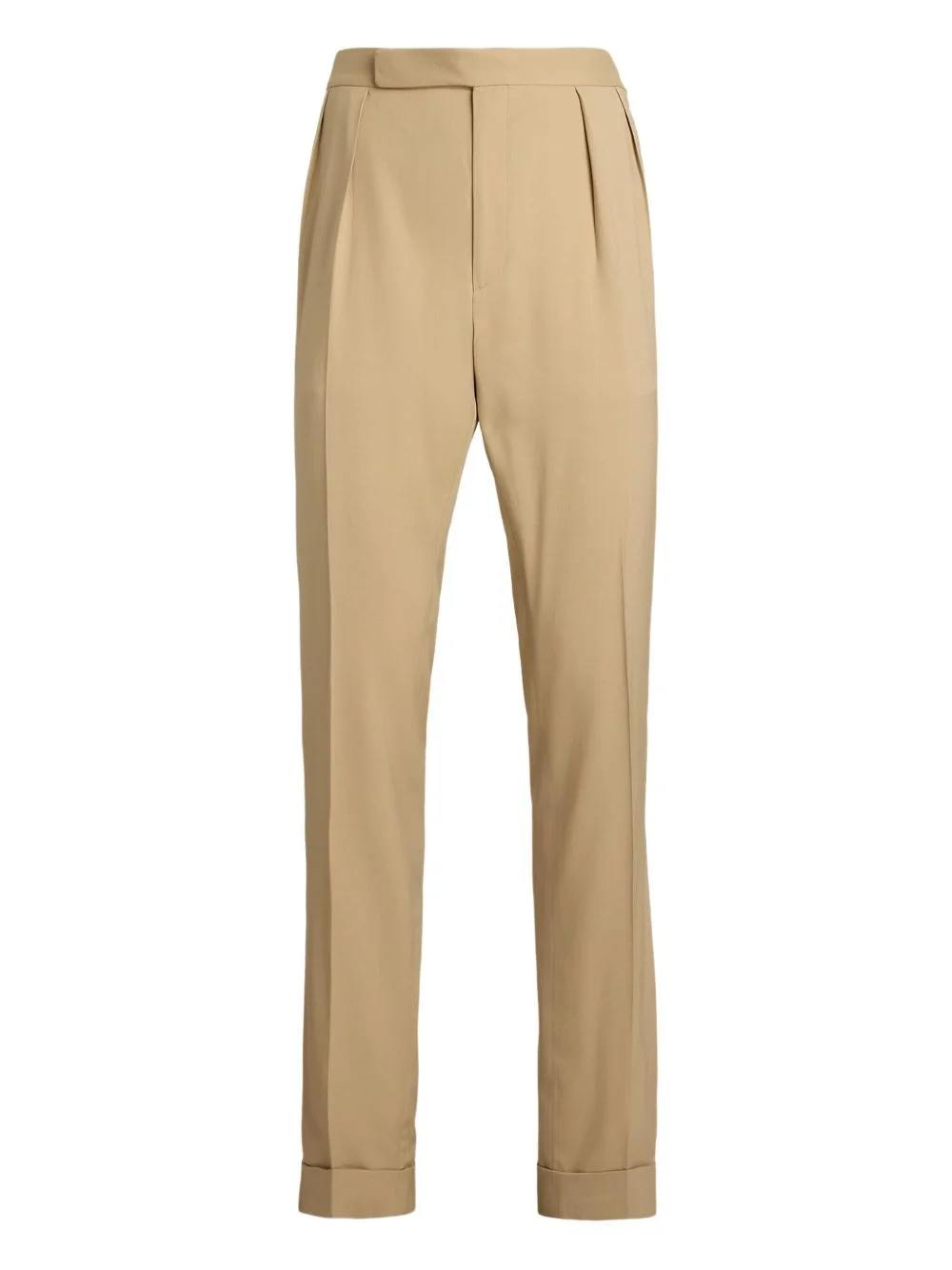 Gregory pleated gabardine trousers Highlights - Classic light brown - Wool - Belt loops - Cuffed hem - Front pleats - Side seam pockets Made in Italy Composition Outer: Wool 100%, Cattle Horn 100% Lining: Viscose 100% Washing instructions Dry Clean Only