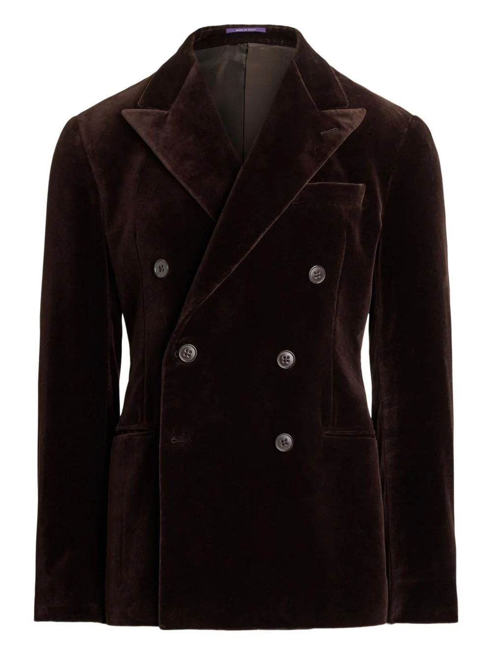 velvet double-breasted blazer Highlights - Brown - Velvet texture - Double-breasted closure - Peak lapels - Six buttons - Welt pockets Made in Italy Composition Outer: Cotton 100% Lining: Cupro 100% Washing instructions Read Manufacturer Guidelines