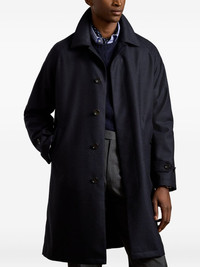 lined coat Highlights - Navy blue - Wool cashmere - Button fastening - Welt pockets - Suede collar - Raglan sleeves Made in Italy Composition Wool 97%, Cashmere 3% Washing instructions Read Manufacturer Guidelines