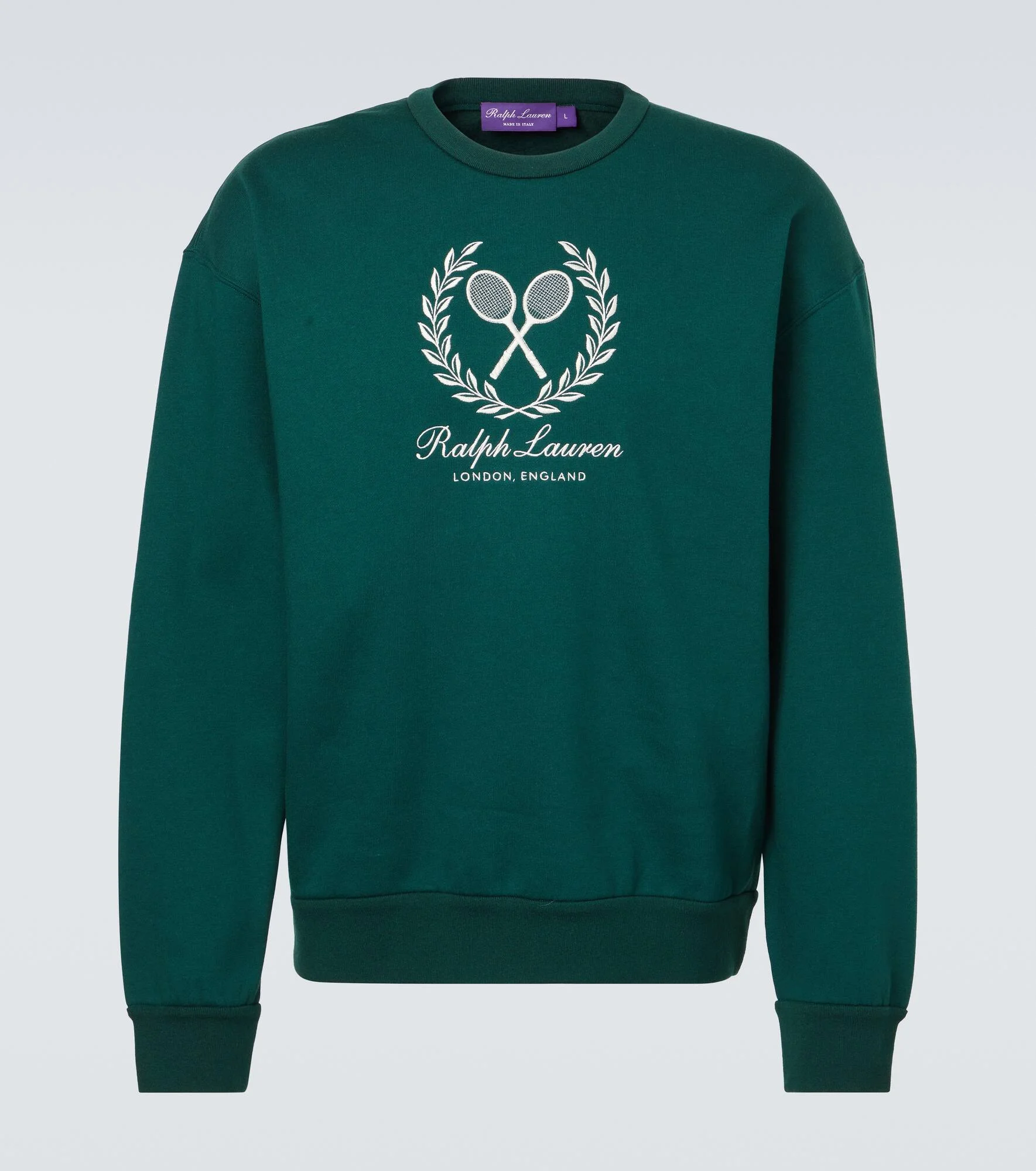 Crafted from luxurious materials, Ralph Lauren Purple Label’s elegant designs boast classic silhouettes and traditional tailoring. This sweatshirt is made from soft cotton and cashmere jersey and finished with a tennis-inspired logo embroidery. Product Details - Material: 95% cotton, 5% cashmere - Care instructions: machine wash at 30 degrees - Made in Italy - Designer color name: Moss Green - Item color: green - Trim: 45% cotton, 43% polyamide, 8% cashmere, 4% elastane - Embroidery: 100% viscose - Collar: crewneck - Hem: ribbed - Item number: P01053788 Size & Fit - True to size - Dropped shoulders - Straight fit - Slightly stretchy fabric - Falls to the hip - Height of model is 188cm-74" and wears a size L
