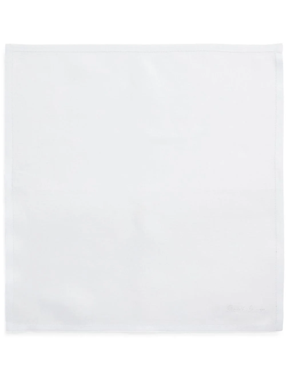 logo-embroidered linen scarf Highlights - White - Linen - Embroidered logo - Square shape - Finished edge Made in Italy Composition Linen/Flax 100% SIZE & FIT Measurement LENGTH 15 in(38.1 cm) WIDTH 15 in(38.1 cm)