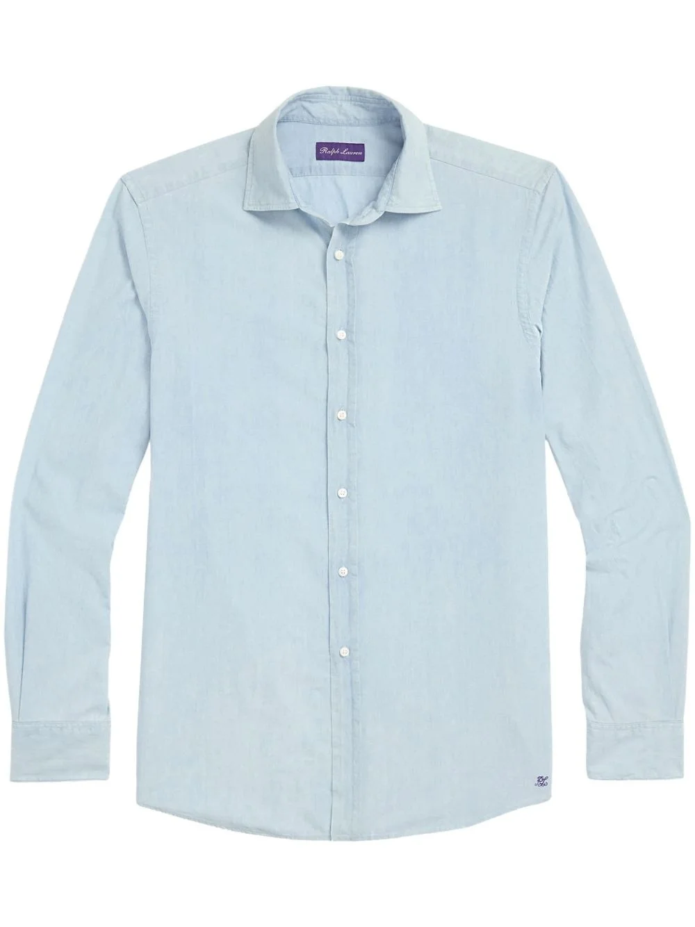 logo-embroidered shirt Highlights - Light blue - Front button fastening - Buttoned-cuff sleeves - Classic collar - Curved hem Imported Composition Cotton 100%