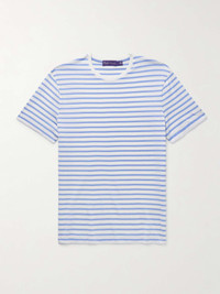 Ralph Lauren Purple Label’s T-shirt is finely spun from mercerised cotton-lisle for a smooth handle and lasting durability. It's patterned with stripes and features an embroidered logo on the sleeve. Size & Fit - Fits true to size. Take your normal size - Designed for a regular fit - Lightweight, stretchy fabric - Model is shown wearing a M - Model measures: chest 38"/ 96cm, height 6'1"/ 185cm Details & Care - Blue and white cotton-lisle - 100% cotton - Machine wash - Designer colour: Deckwash White/ Cornflower Blue