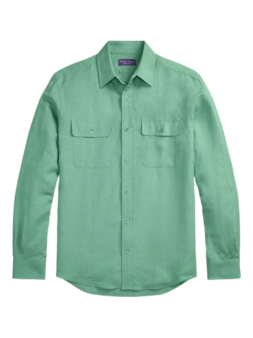long-sleeve shirt Highlights - Green - Long sleeves - Button fastening - Two chest pockets - Curved hem Imported Composition Linen/Flax 51%, Silk 49% Washing instructions Read Manufacturer Guidelines