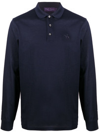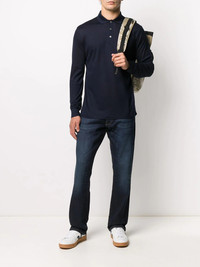 long-sleeved logo polo shirt Highlights - Navy - Cotton - Embroidered logo at the chest - Polo collar - Front button fastening - Long sleeves - Fitted-cuff sleeves - Straight hem Made in Italy Composition Cotton 100% SIZE & FIT Model measurements Height 6 ft 1 in(1.86 m) Bust/Chest 38.58 in(98 cm) Hips 37.4 in(95 cm) Waist 31.1 in(79 cm) Washing instructions Machine Wash