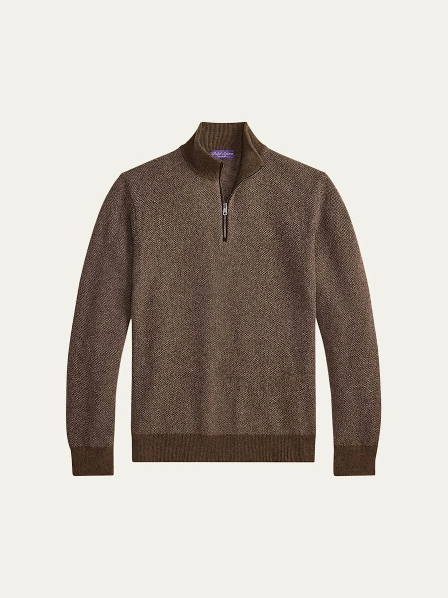 Men's Birdseye Cashmere Half-Zip Mock Neck Sweater