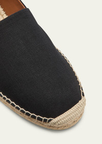 Ralph Lauren "Bowsworth" espadrilles features a linen upper hand-stitched to a coiled jute-and-rubber sole Flat heel Jute cap toe Supple lambskin lining Backstay with pull tab and logo hardware Rubber outsole Slip-on style Made in Spain Online Inquiries: BGS21_NBLZY| Store Inquiries: #4669357