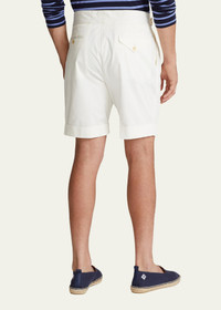 Ralph Lauren Home "Byron" chino shorts are expertly crafted with Italian garment-dyed stretch fabric to achieve a relaxed look Approx. 8.5" inseam; (size 32w ) 9.75" rise Buckled waistband Button-zip-fly Genuine horn buttons High rise; double-pleated front Side slant pockets Back button pockets Model is 6'1"; size 32W Unlined Cotton/elastane Dry clean Made in Portugal Model is 6'1"/185cm. Online Inquiries: BGS21_NANUZ| Store Inquiries: #4490744