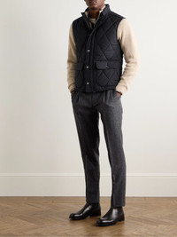 Ralph Lauren Purple Label's refined 'Carleton' gilet borrows practical design details from traditional barn coats. Quilted and filled with insulating down for warmth, it's been made in Italy from durable shell and has soft cotton and cashmere-blend corduroy trims. Size & Fit - Fits true to size. Take your normal size - Designed for a slim fit - Quilted, non-stretchy fabric - Model is shown wearing a M - Model measures: chest 38"/ 96cm, height 6'2"/ 182cm Details & Care - Navy shell and cotton and cashmere-blend corduroy - Snaps and zip fastening - 100% polyester; trim: 85% cotton, 15% cashmere; padding: 90% down (Duck), 10% polyester; lining1: 70% cotton, 15% cashmere, 15% silk; lining2: 100% polyamide - Dry clean - Designer colour: Classic Chairman Navy