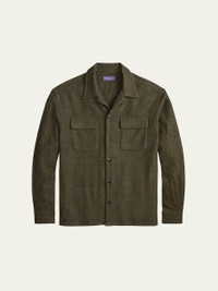 Ralph Lauren Purple Label overshirt in luxe cashmere for softness and warmth, finished with a classic glen plaid pattern for easy styling Chest flap pockets Point collar Button front Round barrel cuffs Shirttail hem Classic fit Cashmere Made in Italy