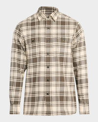 Men's Cotton Plaid Double-Pocket Button-Down Shirt