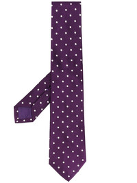 polka-dot silk tie Highlights - Dark purple/white - Mulberry silk - Pointed tip - Adjustable fit Made in Italy Composition Mulberry Silk 100% Washing instructions Dry Clean Only
