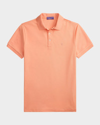 - Ralph Lauren Purple Label polo shirt in double-mercerized cotton pique to ensure exceptional durability and color brilliance - Approx. 29"L from shoulder to hem - Embroidered stacked RL logo on the left chest - Logo-debossed mother-of-pearl buttons - Ribbed polo collar - Three-button placket - Short sleeves - Vented sides with grosgrain trim - Pullover style - Slim fit - Cotton - Unlined - Machine wash - Made in Italy