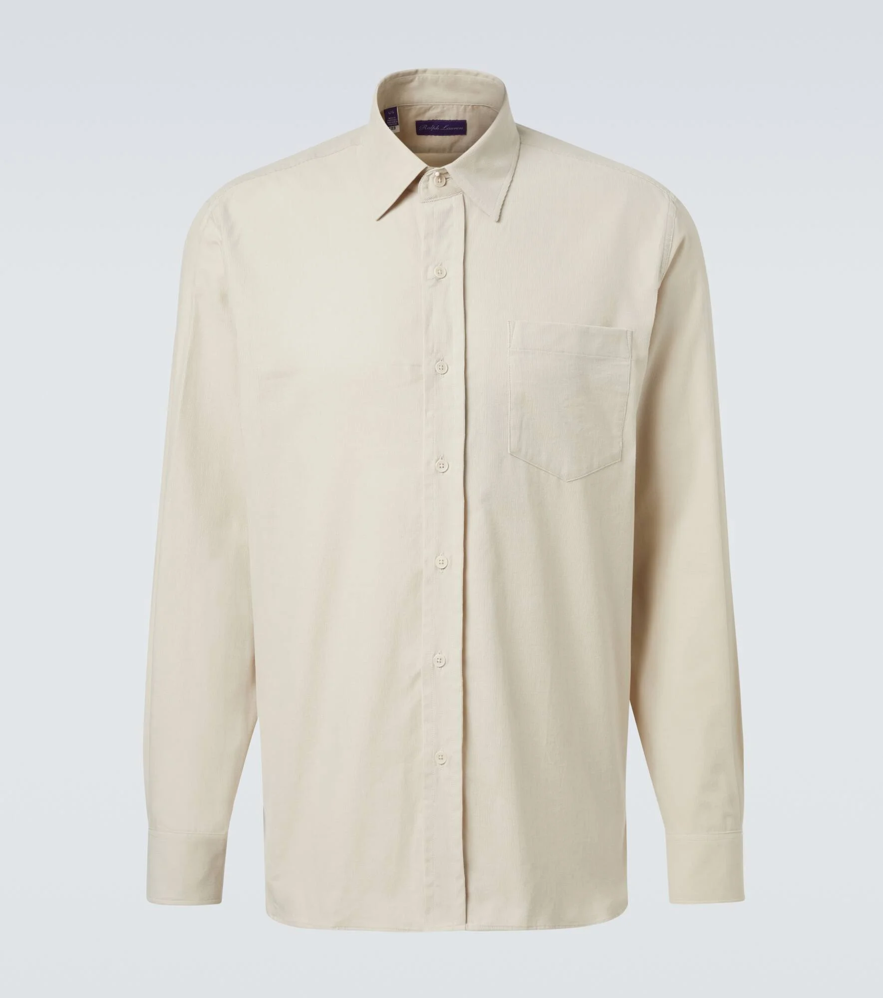 Look to Ralph Lauren Purple Label for well-crafted styles in classic silhouettes. This shirt is made from pure cotton for a regular fit, featuring a pointed collar and a patch pocket on the chest. Product Details - Material: 100% cotton - Care instructions: machine wash at 30 degrees - Made in Portugal - Designer color name: Summer Sand - Item color: beige - Collar: classic (Straight point) - Closure: buttoned placket - Cuff: two buttons - Hem: gusset - Item number: P01053833 Size & Fit - True to size - With pleats in the back - Classic fit - Non-stretchy fabric - Falls below the hip - The model in the picture is 185cm-6'1" and wearing a size L