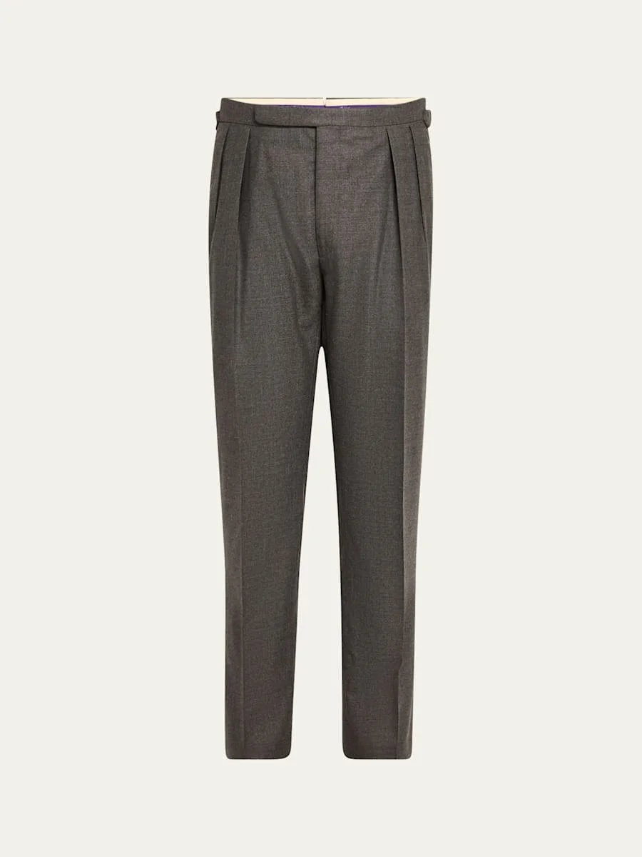 Ralph Lauren "Gregory" pants in worsted flannel Regular rise Side adjusters Doublepleated front Side slip pockets Buttoned back pockets Full length Straight legs Wool Lining: Viscose Made in Italy