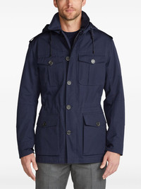 Hartridge field jacket Highlights - Navy blue - Cotton - Front button and zip fastening - Drawstring hood - Long sleeves - Four front flap pockets - Straight hem Made in Italy Composition Cotton 100%
