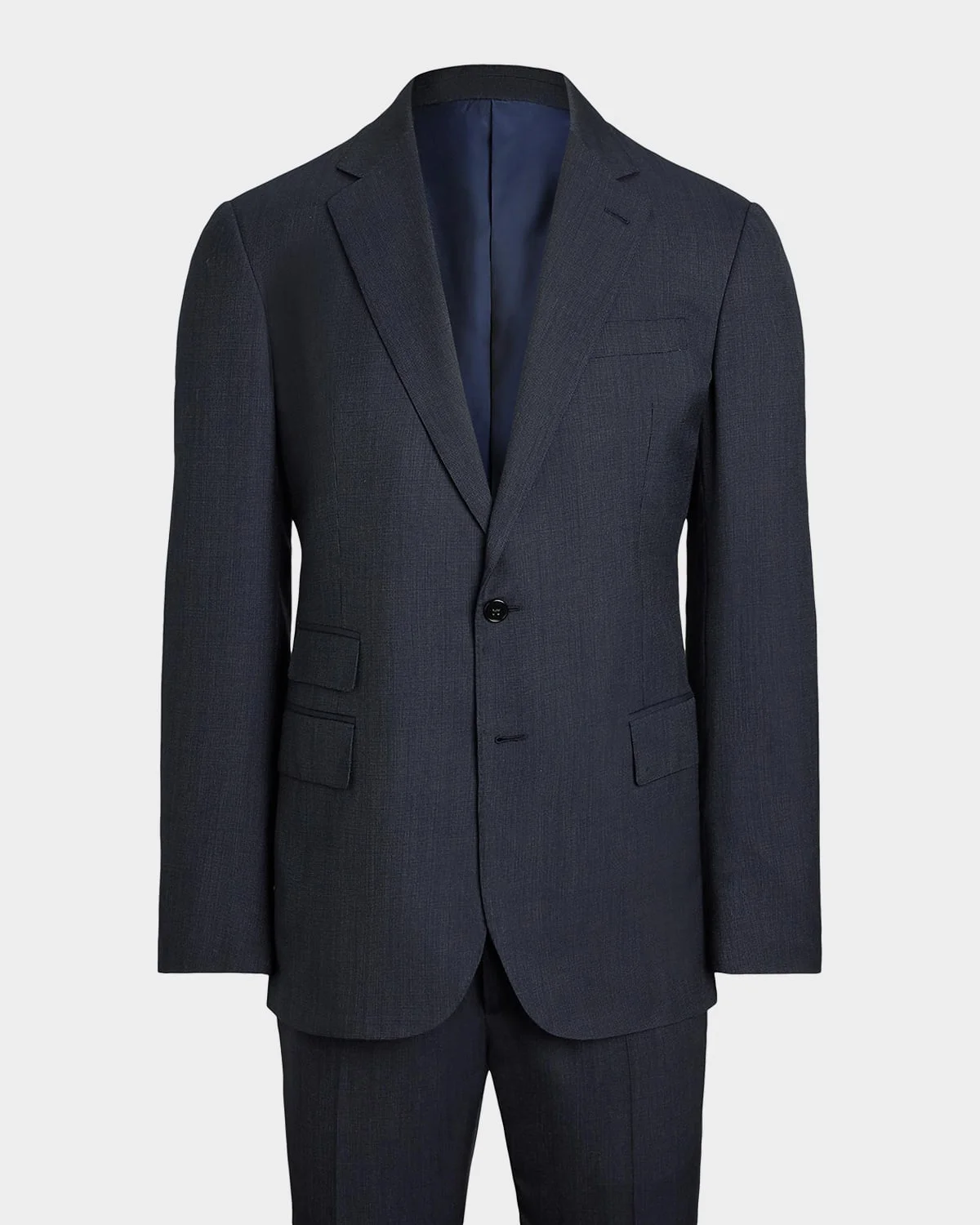 - Ralph Lauren Purple Label pin dot two-piece suit crafted with custom-developed brushed wool-and-cashmere twill - Modern fit - Wool/cashmere - Lining: Cupro/viscose - Dry clean - Made in Italy - Jacket: - Approx. 30.25"L from shoulder to hem - Light construction with fine canvassing - Notch lapels - Buttonhole on the left lapel - Two-button front - Unfinished cuffs - Left chest welt pocket - Ticket pocket - Two waist flap pockets - Two interior chest pockets - Interior left waist pocket - Double vented back - Fully lined - Trousers: - Approx. 38.25" inseam - Straight fit - Side adjusters - Extended hook-and-bar zip closure - Curtain waistband - Side slant pockets - Ticket pocket - Two back buttoned pockets - Lined to the knees - Unfinished hem to be tailored
