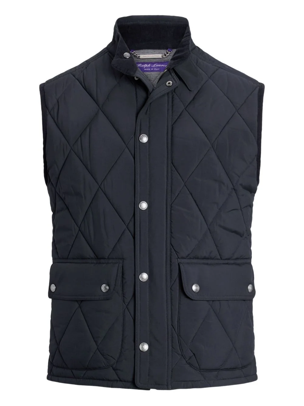Carleton quilted gilet Highlights - Navy blue - Diamond quilting - Press-stud fastening - Two front flap pockets - Stand-up collar Made in Italy Composition Polyester 92%, Cotton 6%, Cashmere 2% Washing instructions Read Manufacturer Guidelines
