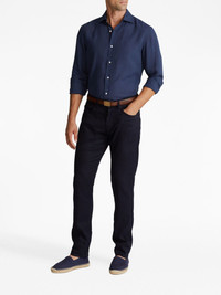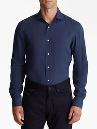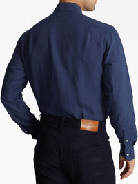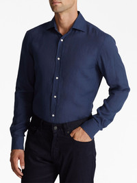 classic-collar linen shirt Highlights - Navy blue - Linen/flax - Classic collar - Front button fastening - Long sleeves - Buttoned-cuff sleeves - Curved hem Made in Italy Composition Linen/Flax 100%