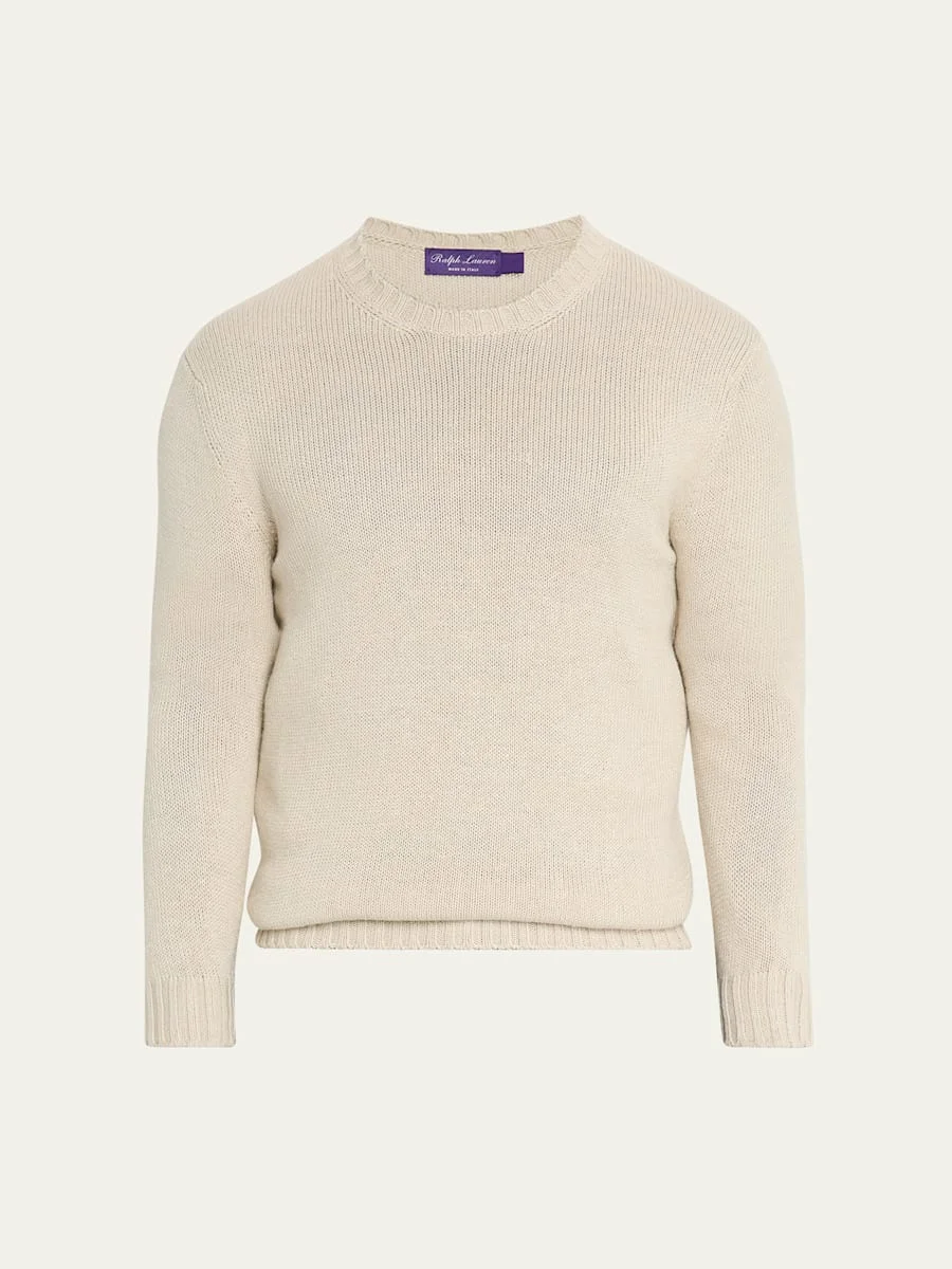 Ralph Lauren Purple Label sweater in a heavyweight silk and linen knit for premium warmth 5GG Crew neckline Long sleeves Ribbed cuffs and hem Classic fit Pullover style Silk/linen Made in Italy Online Inquiries: BGS21_NDPRG| Store Inquiries: #5062665