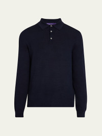 Ralph Lauren polo shirt in fine 18-gauge knit Classic collar Three-button placket Long sleeves Banded cuffs and hem Pullover style Silk/cotton Made in Italy Online Inquiries: BGS21_NCUDA| Store Inquiries: #4953187