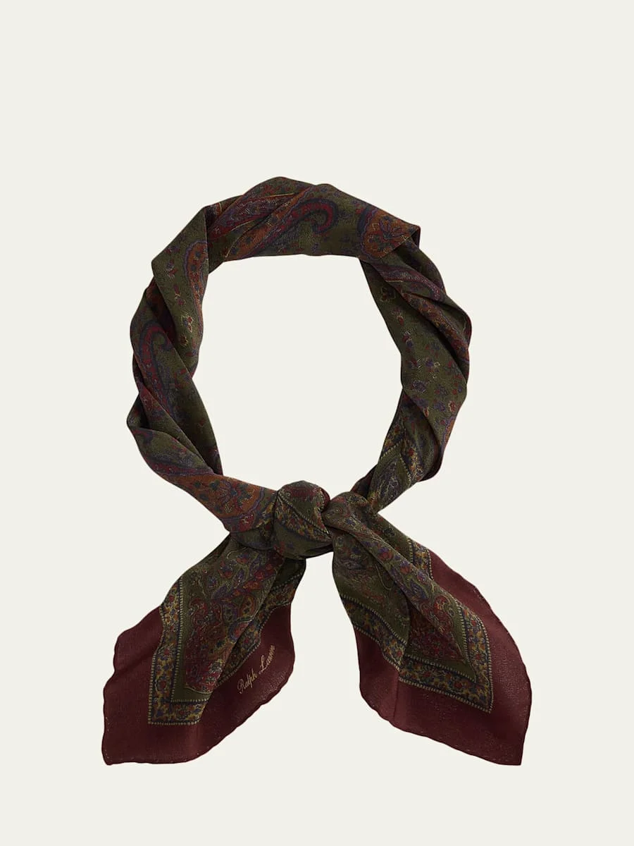 Ralph Lauren Purple Label plaid neckerchief in premium silk, showcasing an elegant paisley print Logo signature on the corner May be styled multiple ways Silk Made in Italy Online Inquiries: BGS21_NENDC| Store Inquiries: #5370589