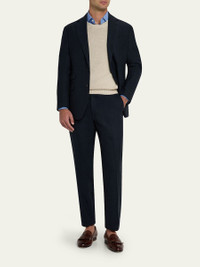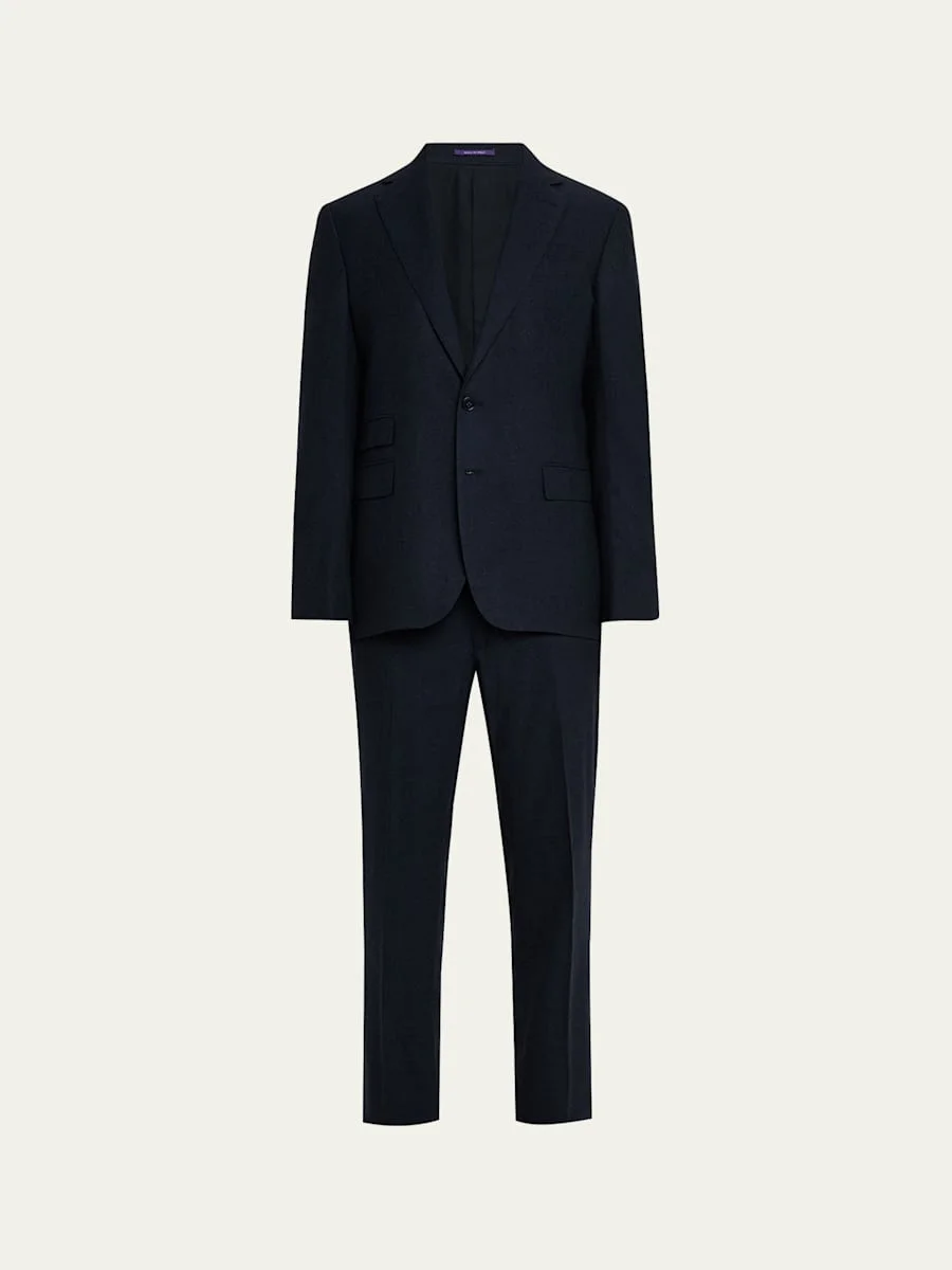 Ralph Lauren Purple Label wool twopiece suit displaying a subtle Glen check pattern Modern fit Wool Made in Italy Jacket: Notched lapels Singlebreasted front Front flap pockets Internal breast pocket Doublevented back Pants: Regular rise Flat front Side slip pockets Slim fit through tapered legs Extended buttonzip front
