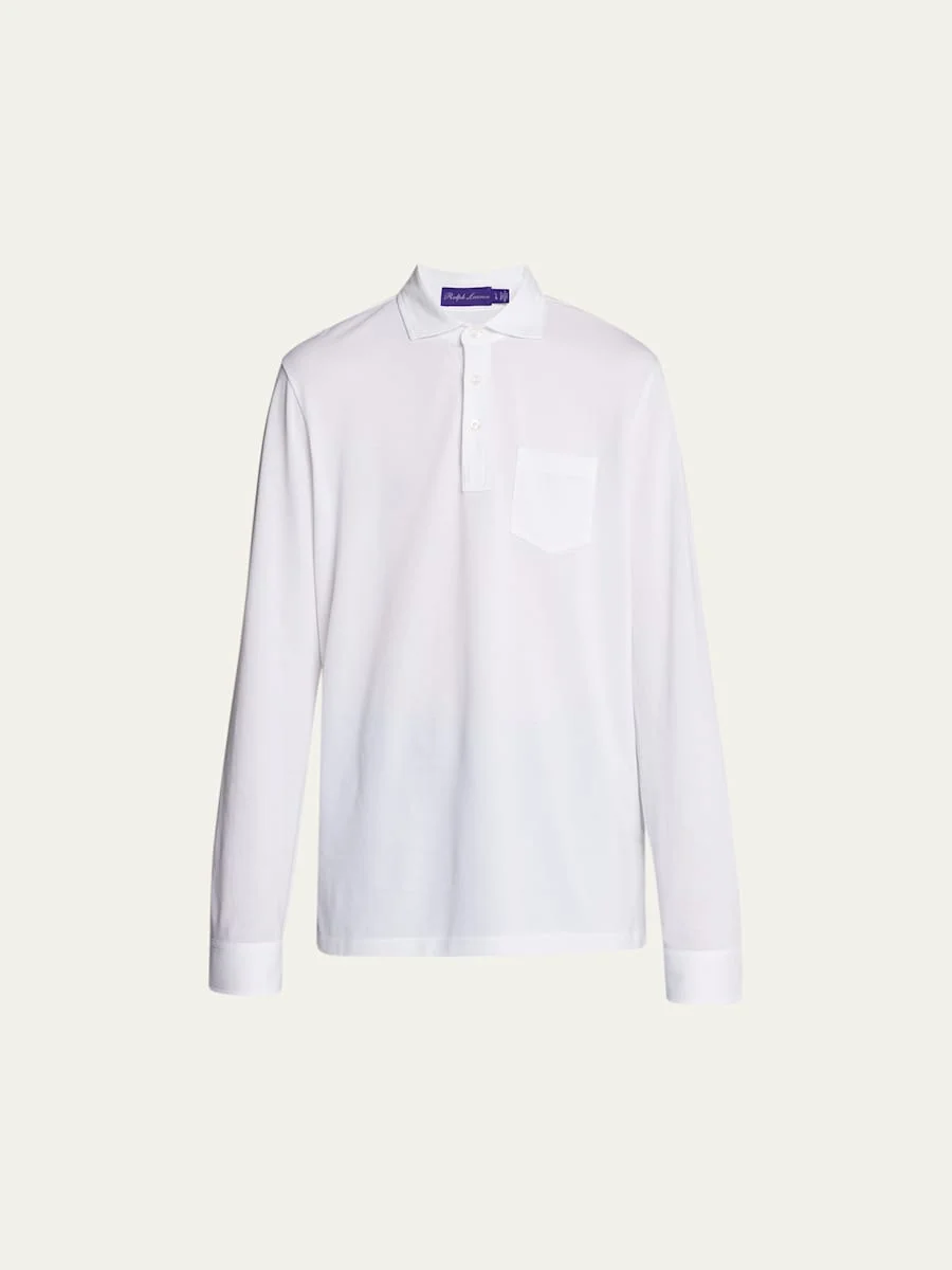 Men's Washed Long-Sleeve Pocket Polo Shirt, White
