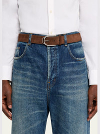 Part of the Ralph Lauren Purple Label Welington Collection, this belt is expertly crafted from supple calf suede. A modern reflection of Ralph Lauren’s equestrian heritage, it’s finished with a signature stirrup buckle. Approx. 1.5"W Silvertone metal prong buckle Single suede keeper loop Slightly pointed tip Adjustable fit Leather lining Made in Italy Online Inquiries: BGS21_NENRN| Store Inquiries: #5428166