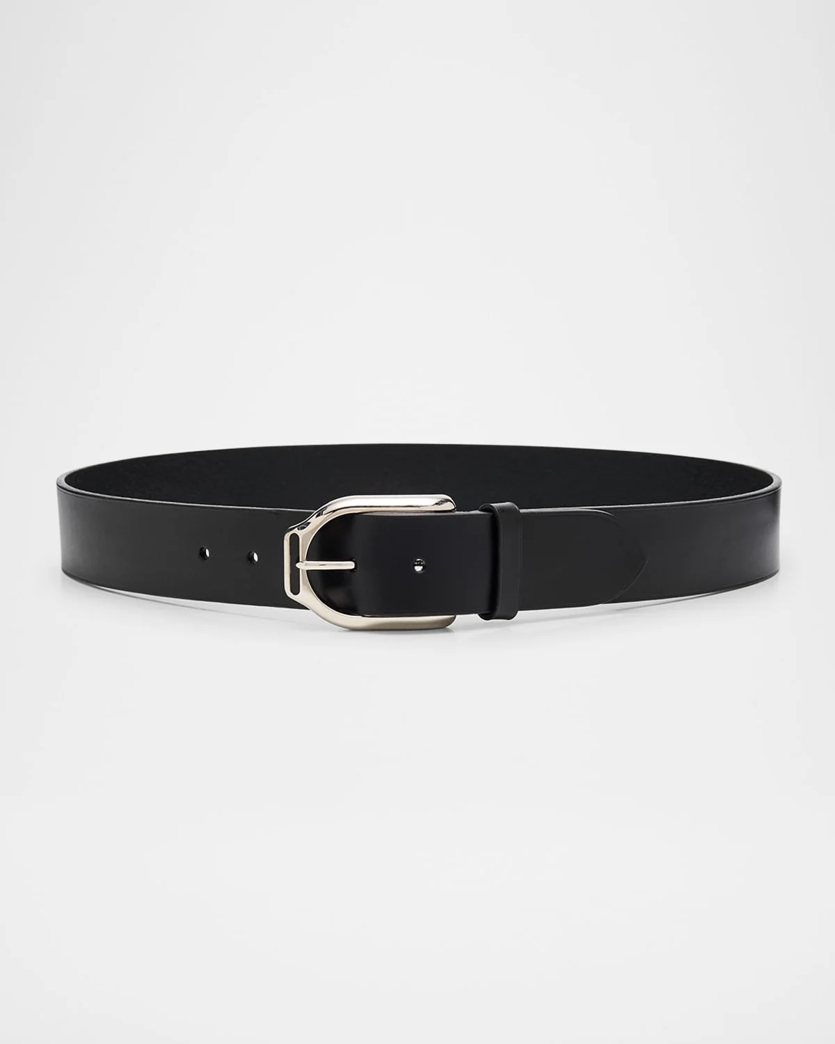 This Ralph Lauren belt is expertly crafted in Italy of supple leather, showcasing the signature stirrup buckle in a polished silvertone finish. Approx. 1.50"W From the Wellington Collection, a modern reflection of Ralph Lauren's equestrian heritage Single-prong metal buckle Leather loop Slightly pointed tip Leather Made in Italy