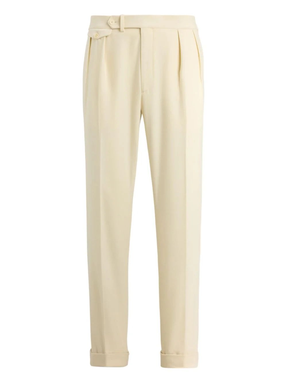 pleated wool trousers Highlights - Cream - Pleated detail - Button fastening - Side pockets - Wool Imported Composition Wool 100% Washing instructions Read Manufacturer Guidelines