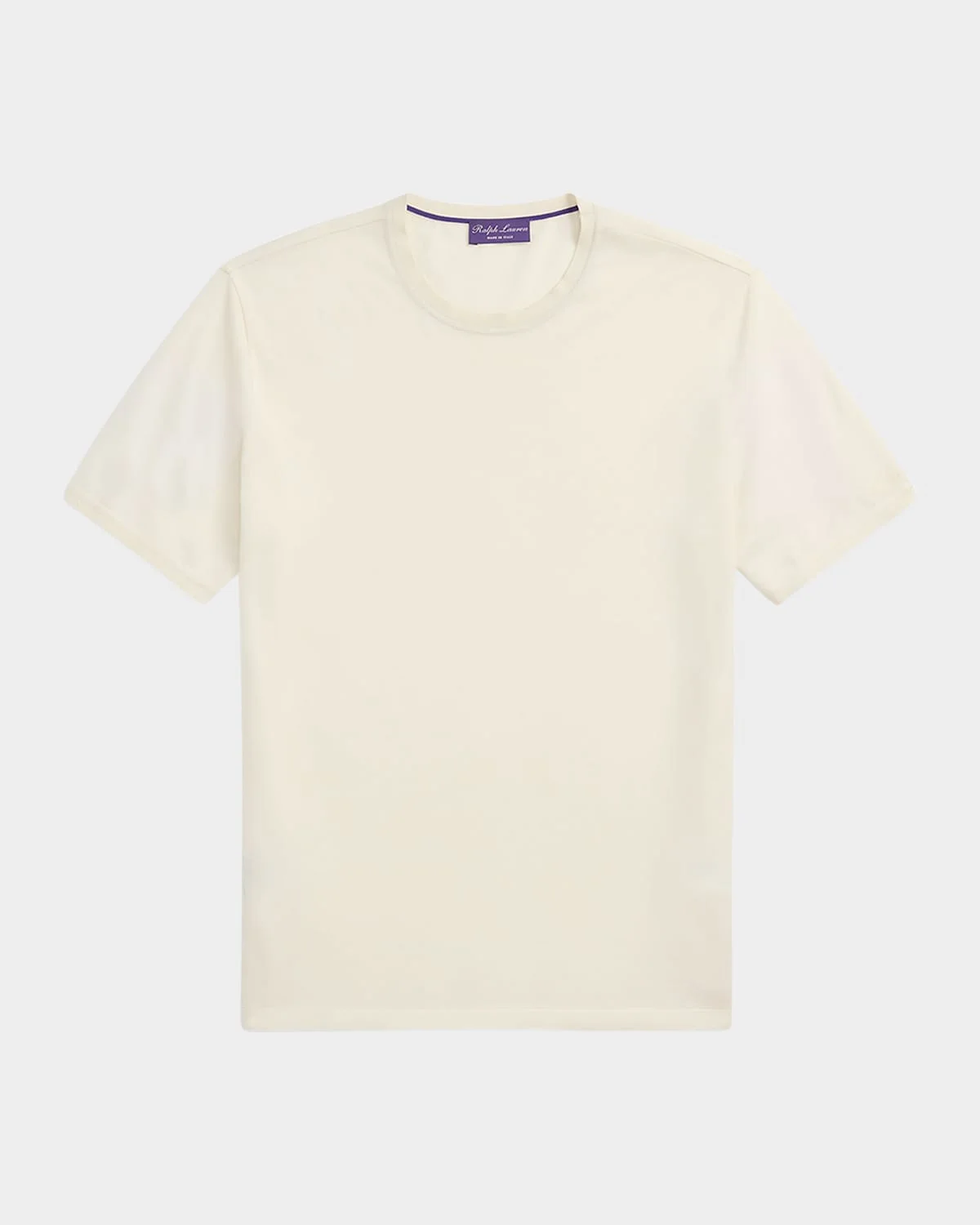 - Ralph Lauren T-shirt crafted with wool pique fabric - Approx. 28"L from shoulder to hem - Crew neckline - Short sleeves with ribbed armbands - “Ralph Lauren” script embroidery on left sleeve - Even vented hem - Pullover style - Hand wash or dry clean - Made in Italy - Size medium has a 28" body length (front and back), a 17.5" shoulder, and a 39" chest. Model is 6'1" (185 cm) and wears a size medium.