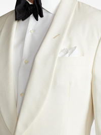 single-breasted tuxedo blazer Highlights - Cream white - Wool - Tailored design - Shawl lapels - Front button fastening - Chest patch pocket - Two front jetted pockets - Long sleeves - Buttoned cuffs - Straight hem Made in Italy Composition Lining: Cupro 100% Outer: Wool 100%